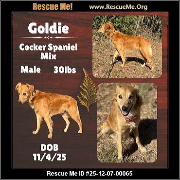 25-12-07-00065D053Goldie (m)(male)Cocker Spaniel mixBurleson County, Caldwell, TXID: 25-12-07-00065